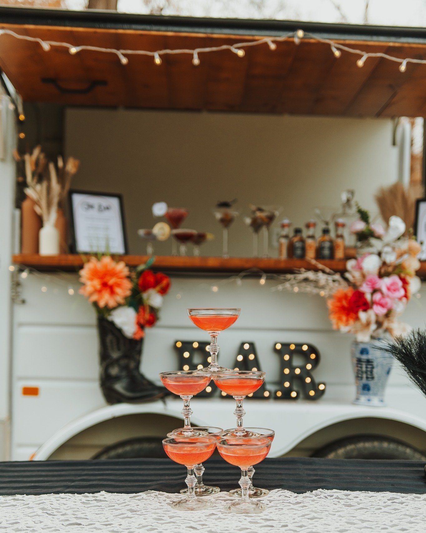 Whether it’s a sophisticated soirée, a ranch-style celebration, or a mountain-view wedding, we craft curated cocktails, elevated bar service, and an ambiance that feels like summer nights on back roads, heading to a bonfire with good music, great friends, and nothing but laughter ahead.